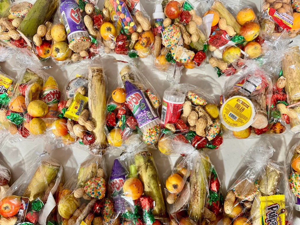 Meanwhile, kids were getting their faces painted and enjoying traditional aguinaldos—goody bags with candy and fruit—made by individual supporters. Adults dressed up as the Three Wise Men and handed out candy to the children. When it was time to hit the piñata, the kids were shrieking with delight.