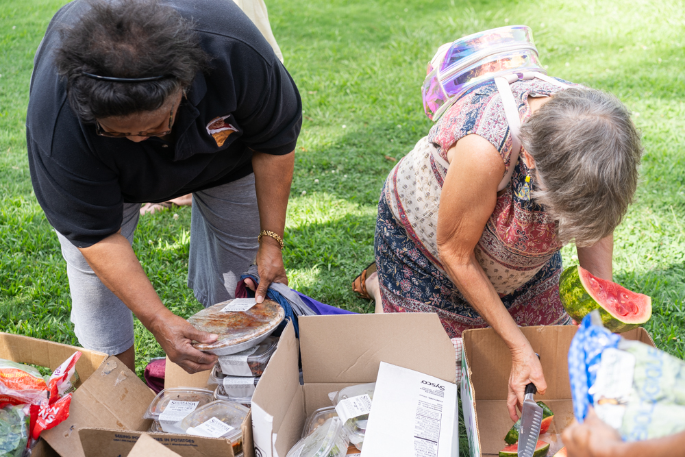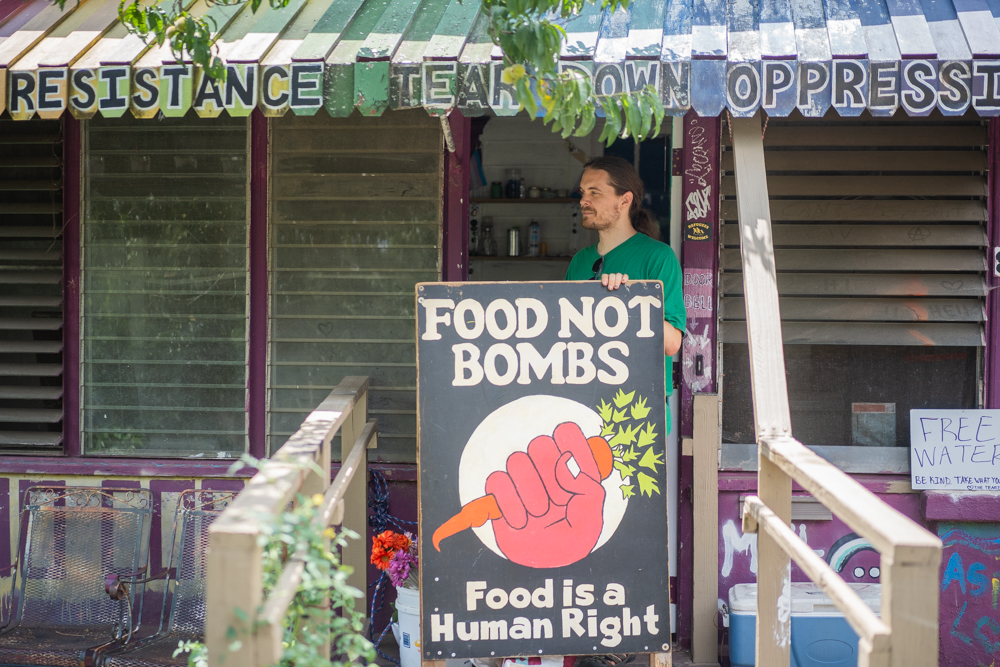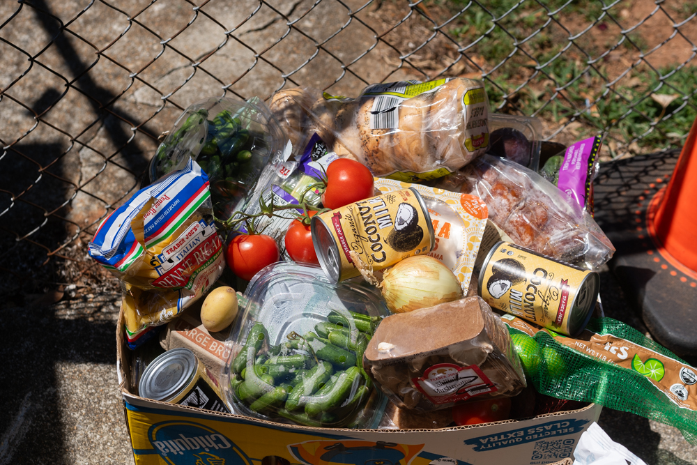 The operation is organized by Food4Life, which arose out of the Atlanta chapter of Food Not Bombs, an international organization that espouses a “solidarity not charity” model for giving away food. Several times a week, Food4Life’s network of volunteers fans out across Atlanta to places like grocery stores and farmers’ markets, picking up food that would otherwise be thrown away due to approaching expiration dates or cosmetic damage. They take the food to a large cooler housed at a church, where another group picks it up and redistributes it at “food distros” like the one in Gresham Park. Many people have come to rely on events like this; one elderly woman says she depends on it to help feed her six grandchildren. Sometimes the food is gone within 30 minutes.