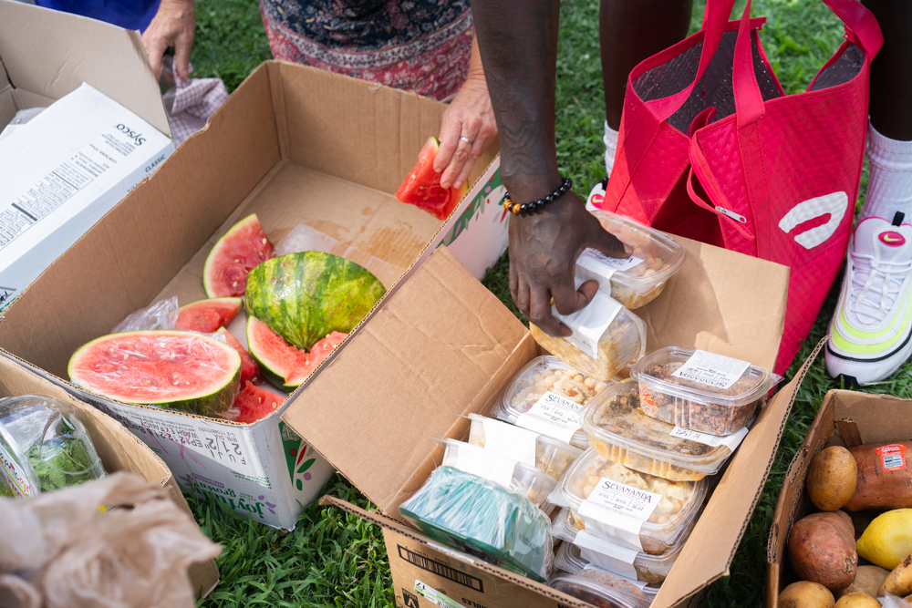 On a recent Wednesday afternoon, a handful of Atlantans sat in hot cars in a parking lot in Gresham Park, waiting to collect groceries from a local food-distribution organization. When the first round of volunteers showed up, they had boxes of food but no folding tables to distribute it on—which didn’t seem to bother anybody. The volunteers neatly lined the boxes up on the ground. Neighbors selected produce, like Japanese sweet potatoes, and prepared food from the Little Five Points health food co-op Sevananda to stick into their grocery bags.