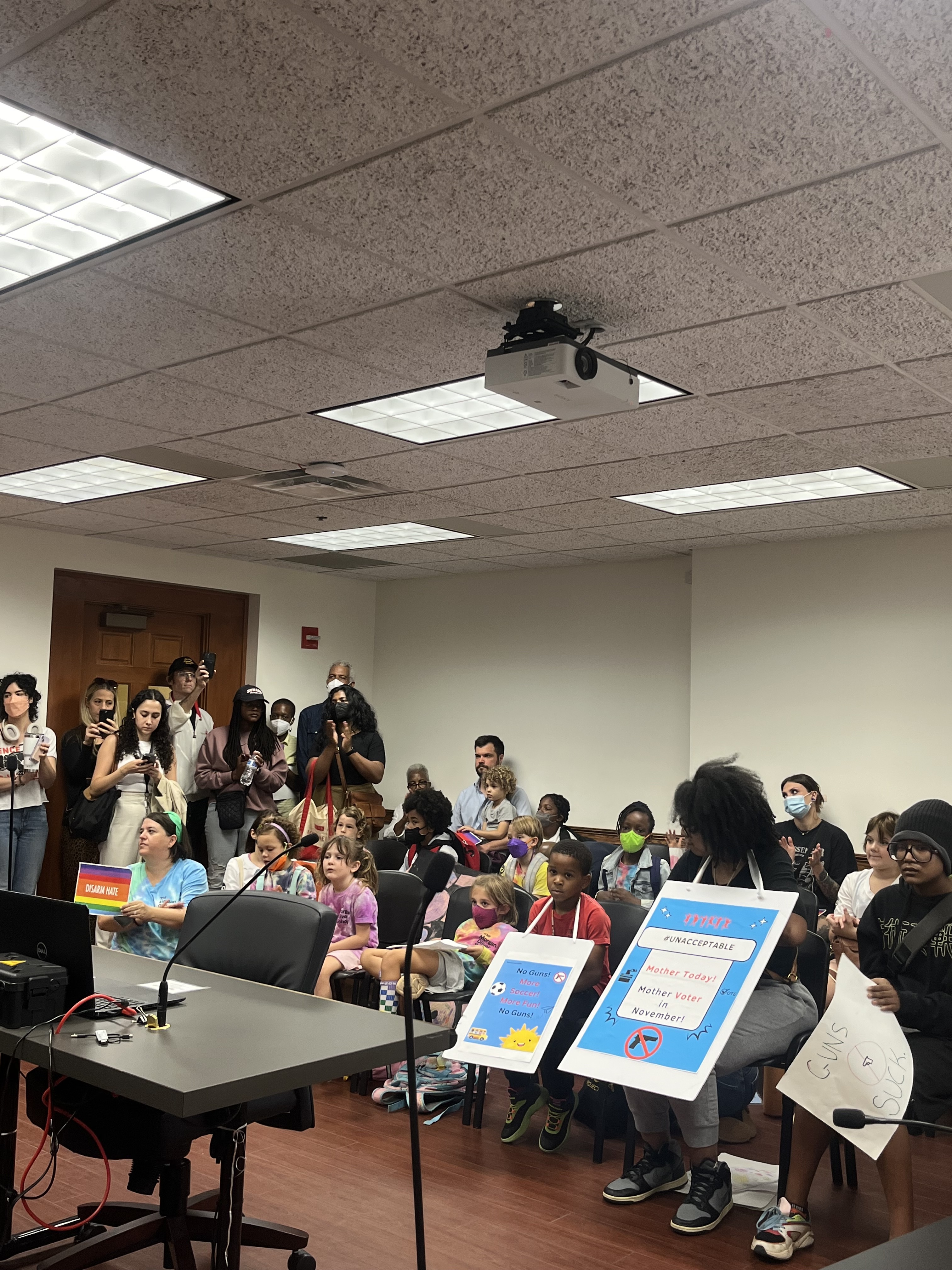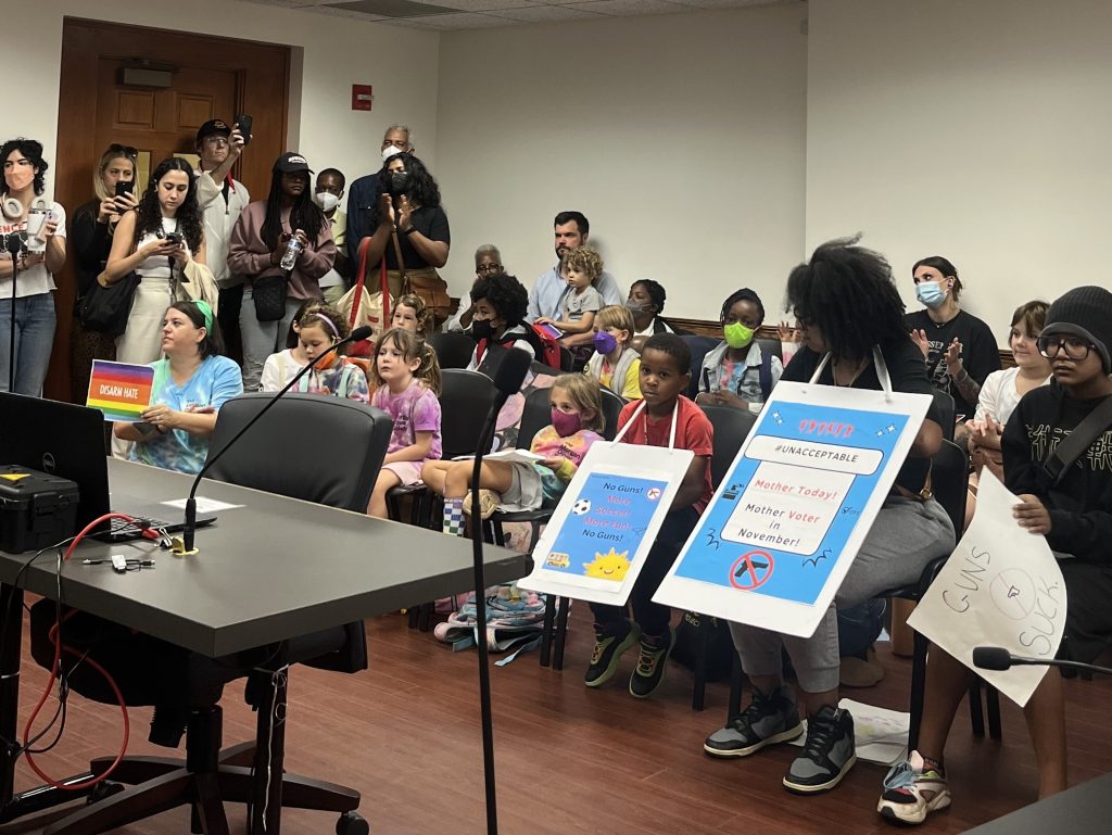 Students, parents and other advocates for gun law changes spoke and sported signs demanding change during the legislative session Thursday, September 19, at the Georgia Capitol. (Angie Uddullah)